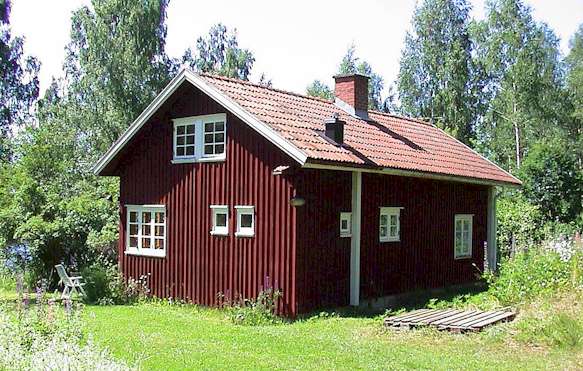 I huvudbyggnaden finns kök, matplats, badrum, storstuga och på övervåningen två sovrum med 2 bäddar vardera .